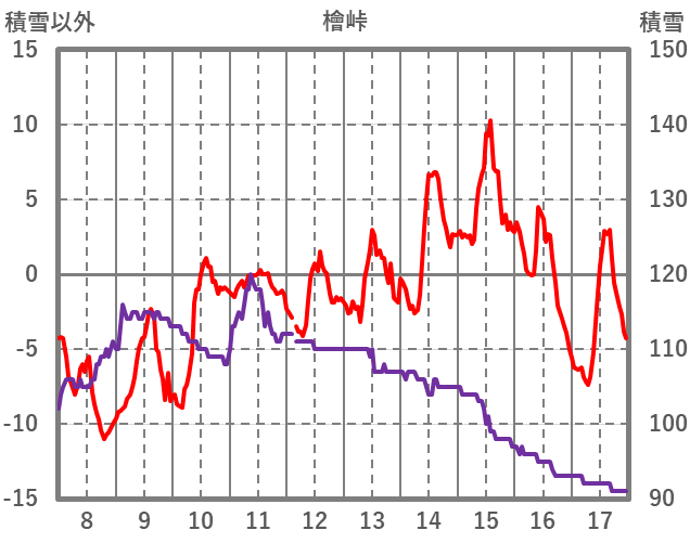 | 日 | 時 | 気温 | 降水 | 風向/風速 | 日照 | 積雪 | 降雪 |