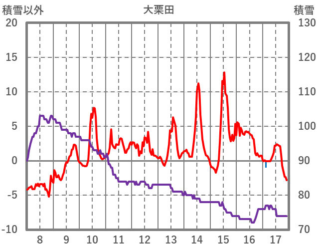 | 日 | 時 | 気温 | 降水 | 風向/風速 | 日照 | 積雪 | 降雪 |