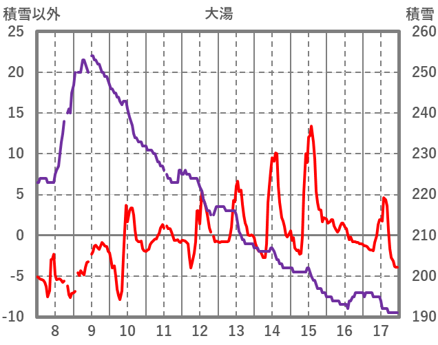 | 日 | 時 | 気温 | 降水 | 風向/風速 | 日照 | 積雪 | 降雪 |