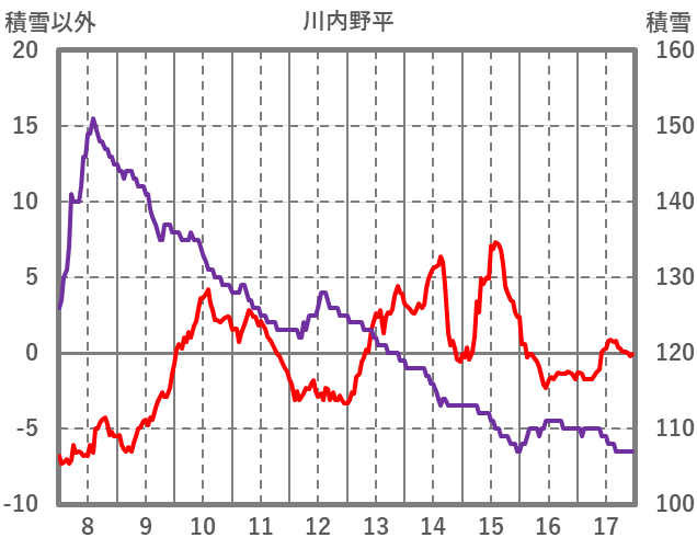 | 日 | 時 | 気温 | 降水 | 風向/風速 | 日照 | 積雪 | 降雪 |