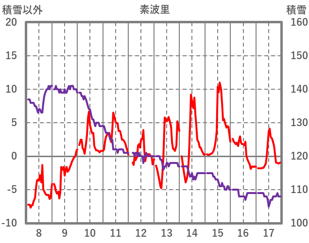 | 日 | 時 | 気温 | 降水 | 風向/風速 | 日照 | 積雪 | 降雪 |