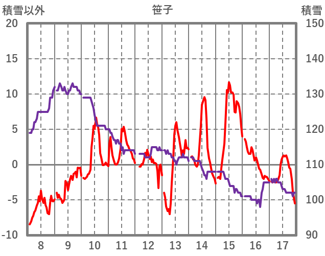 | 日 | 時 | 気温 | 降水 | 風向/風速 | 日照 | 積雪 | 降雪 |