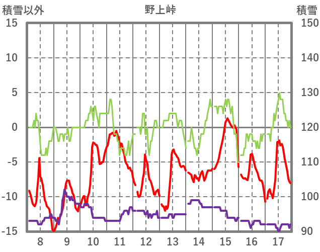 | 日 | 時 | 気温 | 降水 | 風向/風速 | 日照 | 積雪 | 降雪 |