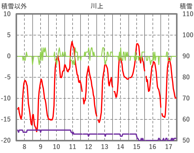 | 日 | 時 | 気温 | 降水 | 風向/風速 | 日照 | 積雪 | 降雪 |