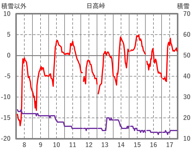 | 日 | 時 | 気温 | 降水 | 風向/風速 | 日照 | 積雪 | 降雪 |