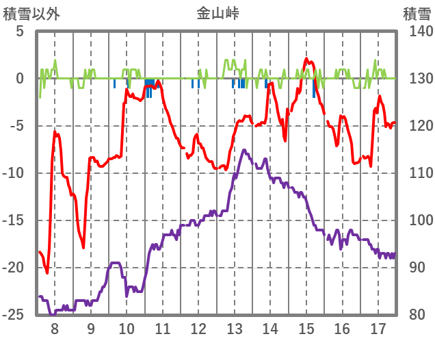 | 日 | 時 | 気温 | 降水 | 風向/風速 | 日照 | 積雪 | 降雪 |