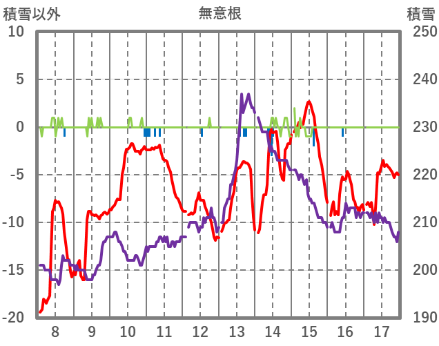 | 日 | 時 | 気温 | 降水 | 風向/風速 | 日照 | 積雪 | 降雪 |