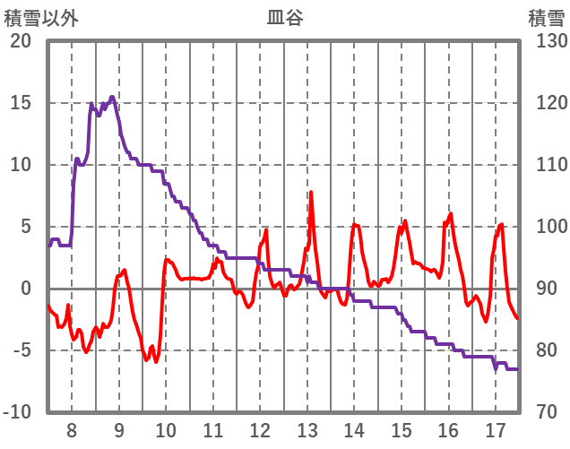 | 日 | 時 | 気温 | 降水 | 風向/風速 | 日照 | 積雪 | 降雪 |