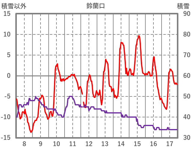 | 日 | 時 | 気温 | 降水 | 風向/風速 | 日照 | 積雪 | 降雪 |