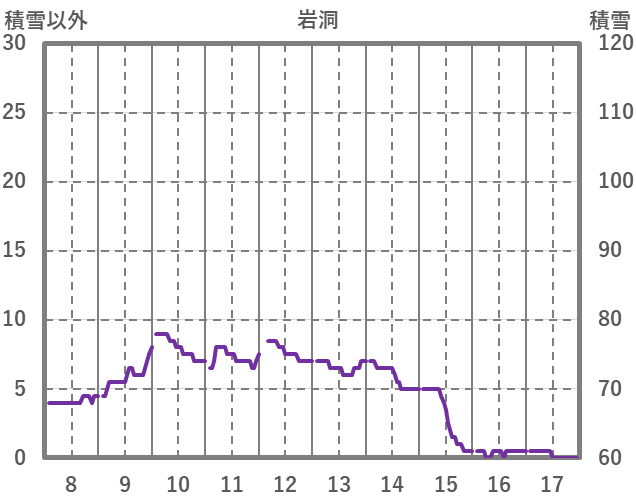 | 日 | 時 | 気温 | 降水 | 風向/風速 | 日照 | 積雪 | 降雪 |