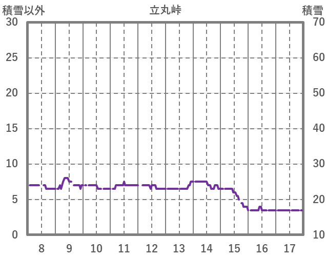 | 日 | 時 | 気温 | 降水 | 風向/風速 | 日照 | 積雪 | 降雪 |