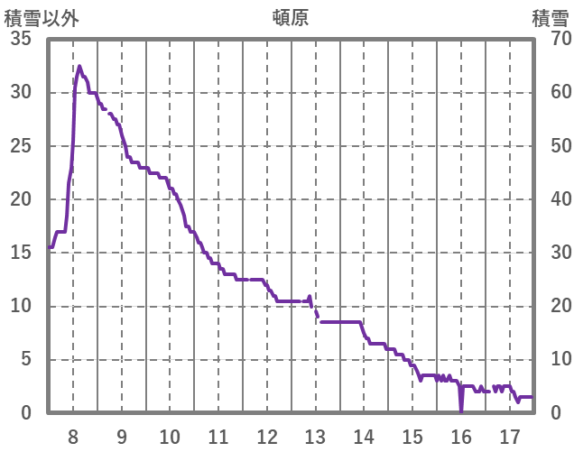 | 日 | 時 | 気温 | 降水 | 風向/風速 | 日照 | 積雪 | 降雪 |