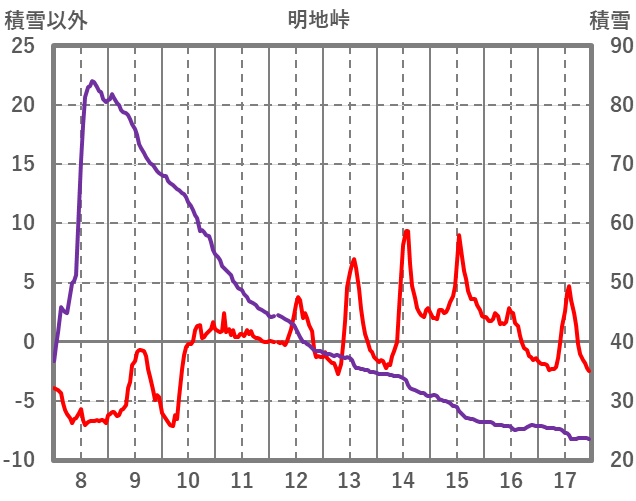| 日 | 時 | 気温 | 降水 | 風向/風速 | 日照 | 積雪 | 降雪 |