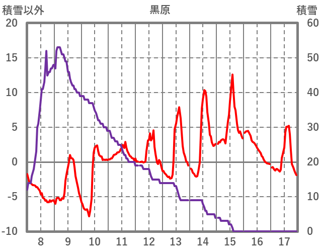 | 日 | 時 | 気温 | 降水 | 風向/風速 | 日照 | 積雪 | 降雪 |
