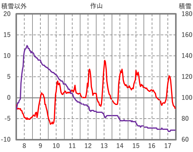 | 日 | 時 | 気温 | 降水 | 風向/風速 | 日照 | 積雪 | 降雪 |