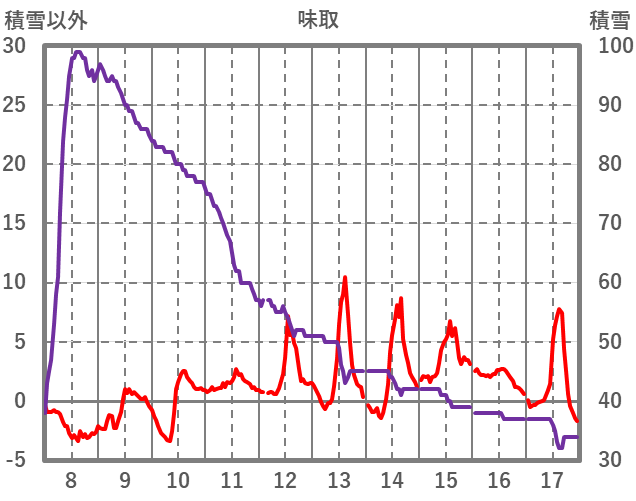 | 日 | 時 | 気温 | 降水 | 風向/風速 | 日照 | 積雪 | 降雪 |