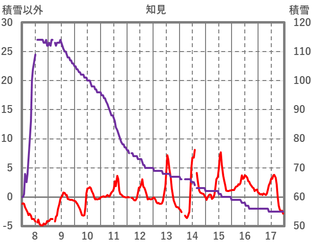 | 日 | 時 | 気温 | 降水 | 風向/風速 | 日照 | 積雪 | 降雪 |