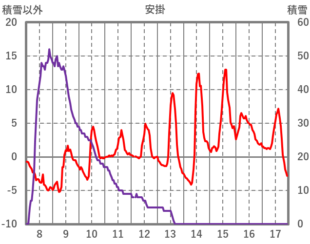 | 日 | 時 | 気温 | 降水 | 風向/風速 | 日照 | 積雪 | 降雪 |