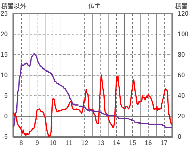 | 日 | 時 | 気温 | 降水 | 風向/風速 | 日照 | 積雪 | 降雪 |
