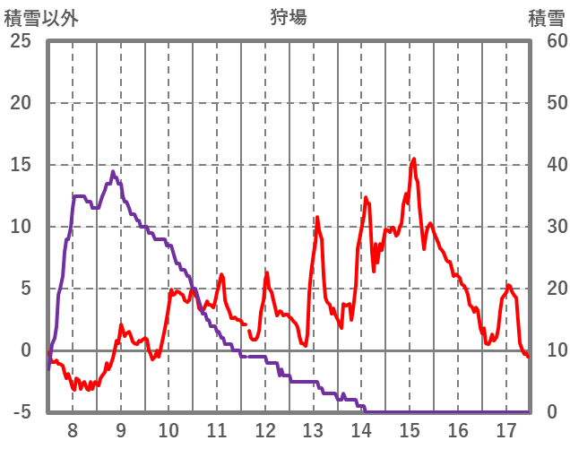| 日 | 時 | 気温 | 降水 | 風向/風速 | 日照 | 積雪 | 降雪 |