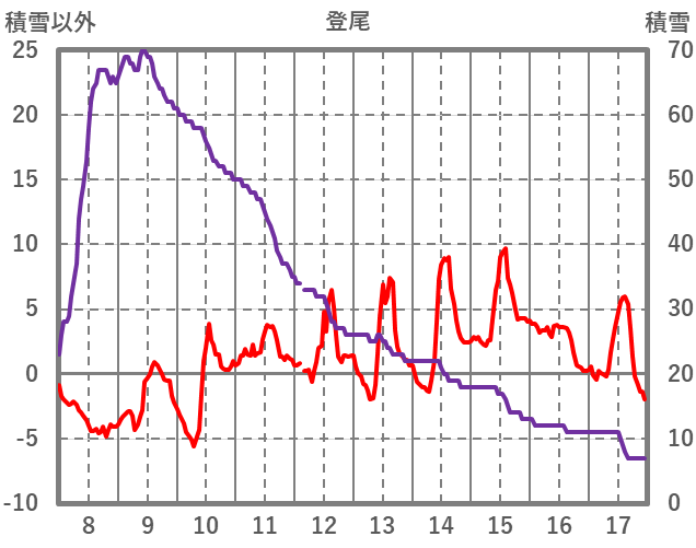 | 日 | 時 | 気温 | 降水 | 風向/風速 | 日照 | 積雪 | 降雪 |