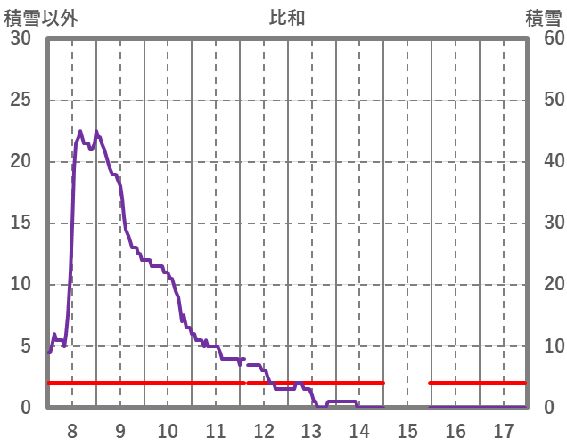 | 日 | 時 | 気温 | 降水 | 風向/風速 | 日照 | 積雪 | 降雪 |