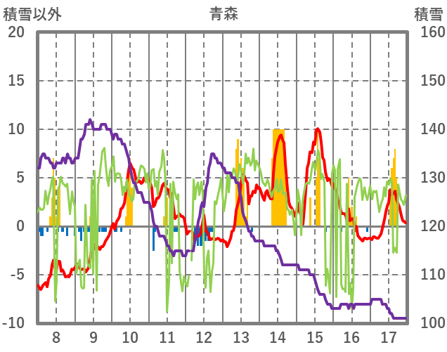 | 日 | 時 | 気温 | 降水 | 風向/風速 | 日照 | 積雪 | 降雪 |