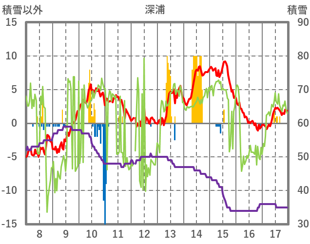 | 日 | 時 | 気温 | 降水 | 風向/風速 | 日照 | 積雪 | 降雪 |