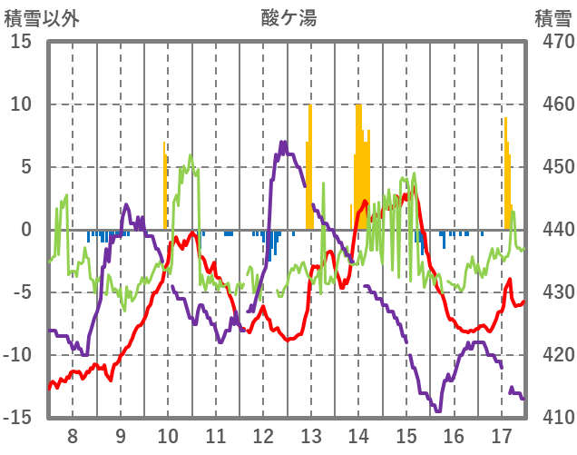 | 日 | 時 | 気温 | 降水 | 風向/風速 | 日照 | 積雪 | 降雪 |