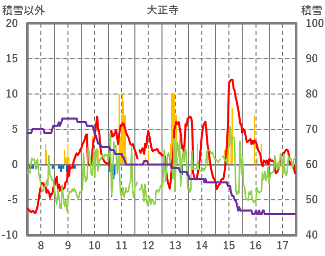 | 日 | 時 | 気温 | 降水 | 風向/風速 | 日照 | 積雪 | 降雪 |