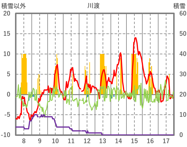 | 日 | 時 | 気温 | 降水 | 風向/風速 | 日照 | 積雪 | 降雪 |