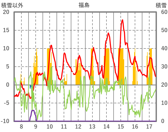 | 日 | 時 | 気温 | 降水 | 風向/風速 | 日照 | 積雪 | 降雪 |