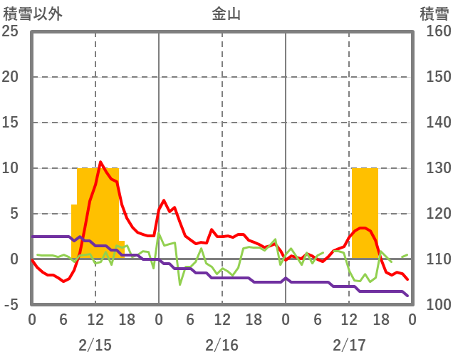 | 日 | 時 | 気温 | 降水 | 風向/風速 | 日照 | 積雪 | 降雪 |
