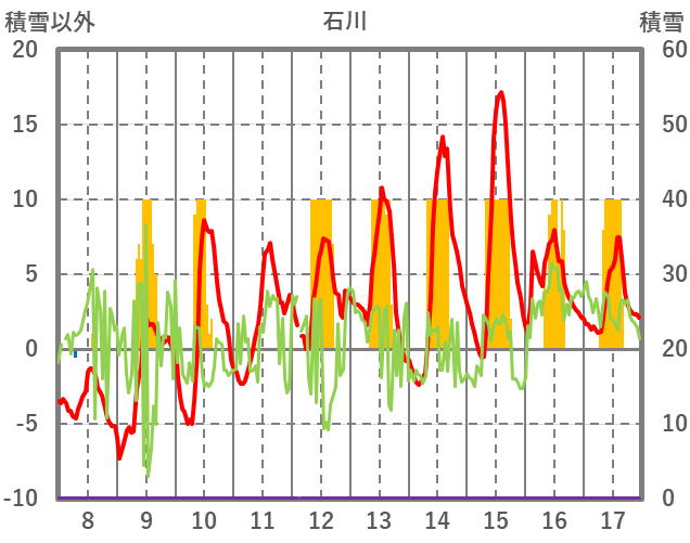 | 日 | 時 | 気温 | 降水 | 風向/風速 | 日照 | 積雪 | 降雪 |