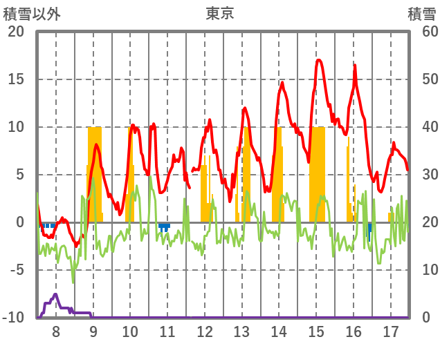 | 日 | 時 | 気温 | 降水 | 風向/風速 | 日照 | 積雪 | 降雪 |