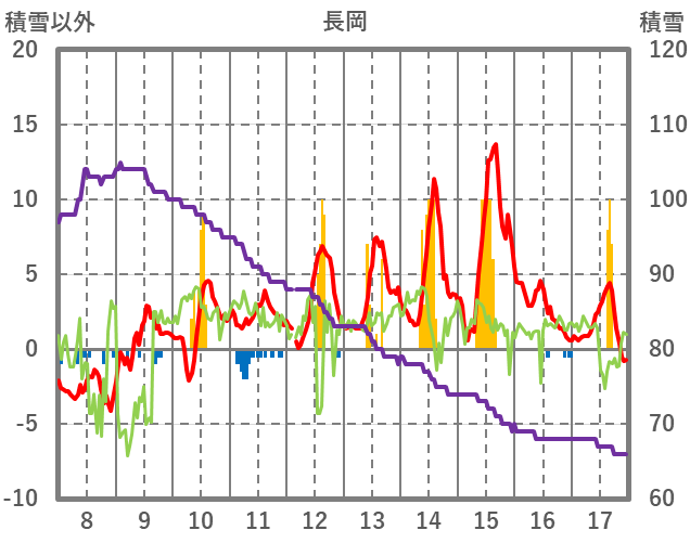 | 日 | 時 | 気温 | 降水 | 風向/風速 | 日照 | 積雪 | 降雪 |
