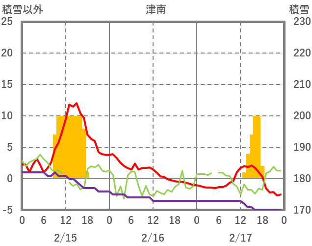 | 日 | 時 | 気温 | 降水 | 風向/風速 | 日照 | 積雪 | 降雪 |