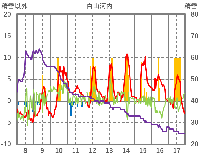| 日 | 時 | 気温 | 降水 | 風向/風速 | 日照 | 積雪 | 降雪 |