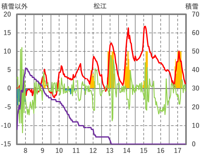 | 日 | 時 | 気温 | 降水 | 風向/風速 | 日照 | 積雪 | 降雪 |