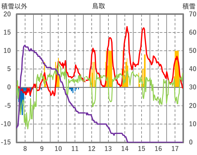 | 日 | 時 | 気温 | 降水 | 風向/風速 | 日照 | 積雪 | 降雪 |