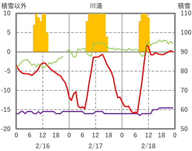 | 日 | 時 | 気温 | 降水 | 風向/風速 | 日照 | 積雪 | 降雪 |