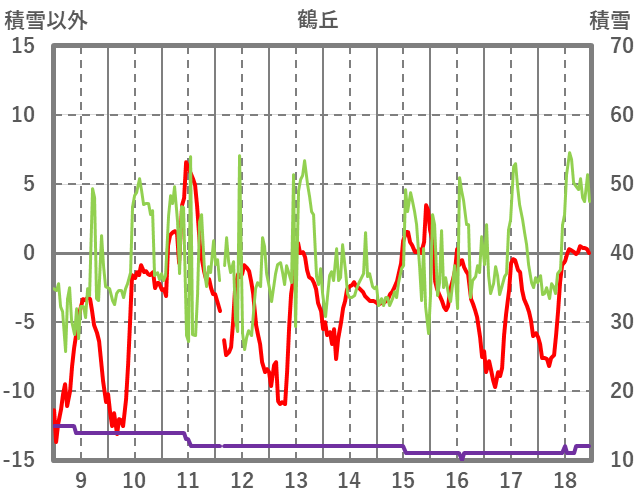 | 日 | 時 | 気温 | 降水 | 風向/風速 | 日照 | 積雪 | 降雪 |