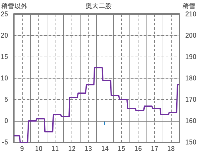 | 日 | 時 | 気温 | 降水 | 風向/風速 | 日照 | 積雪 | 降雪 |