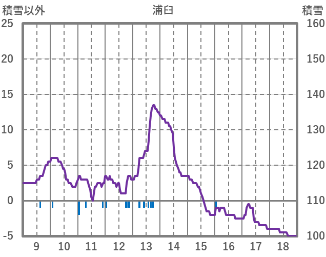 | 日 | 時 | 気温 | 降水 | 風向/風速 | 日照 | 積雪 | 降雪 |