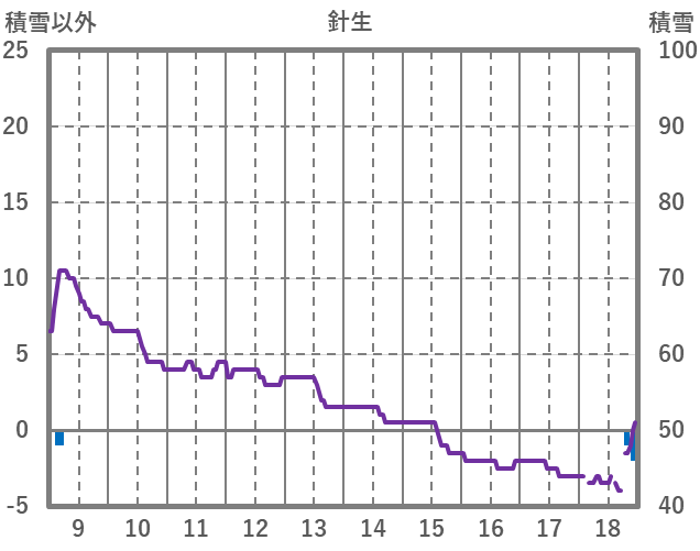 | 日 | 時 | 気温 | 降水 | 風向/風速 | 日照 | 積雪 | 降雪 |