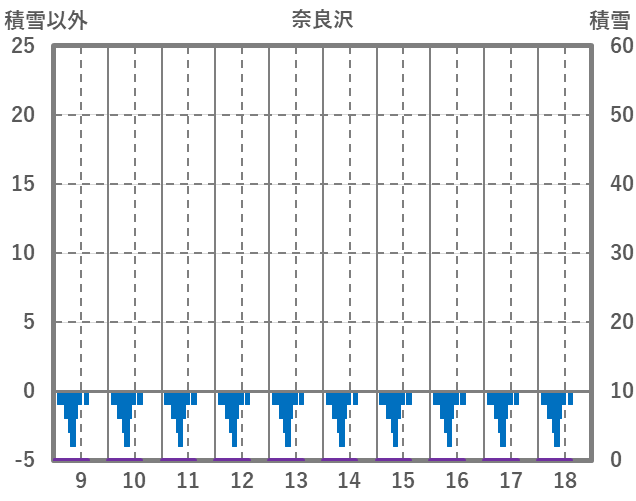 | 日 | 時 | 気温 | 降水 | 風向/風速 | 日照 | 積雪 | 降雪 |