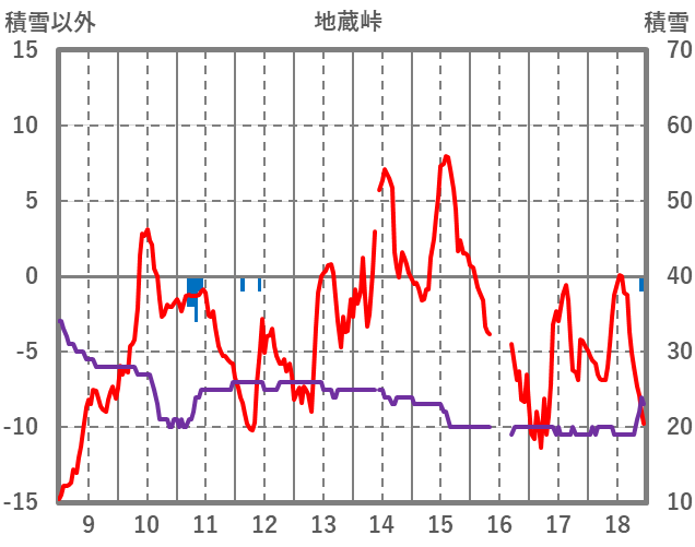 | 日 | 時 | 気温 | 降水 | 風向/風速 | 日照 | 積雪 | 降雪 |