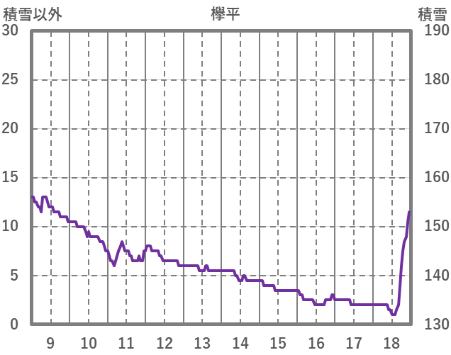 | 日 | 時 | 気温 | 降水 | 風向/風速 | 日照 | 積雪 | 降雪 |