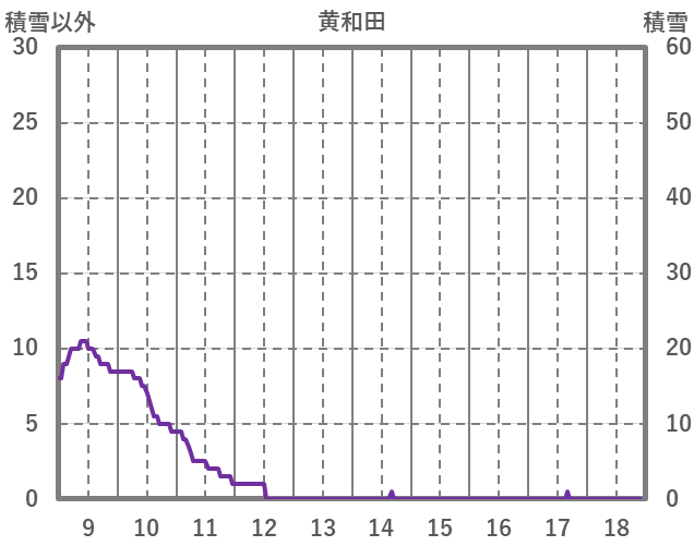 | 日 | 時 | 気温 | 降水 | 風向/風速 | 日照 | 積雪 | 降雪 |