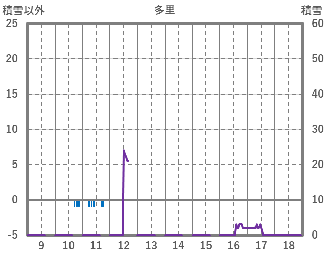 | 日 | 時 | 気温 | 降水 | 風向/風速 | 日照 | 積雪 | 降雪 |